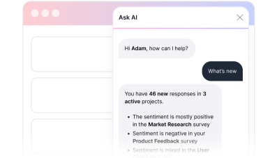 Ask rating scale, multiple choice, ranking, and other questions and then enhance insights with AI follow up questions.