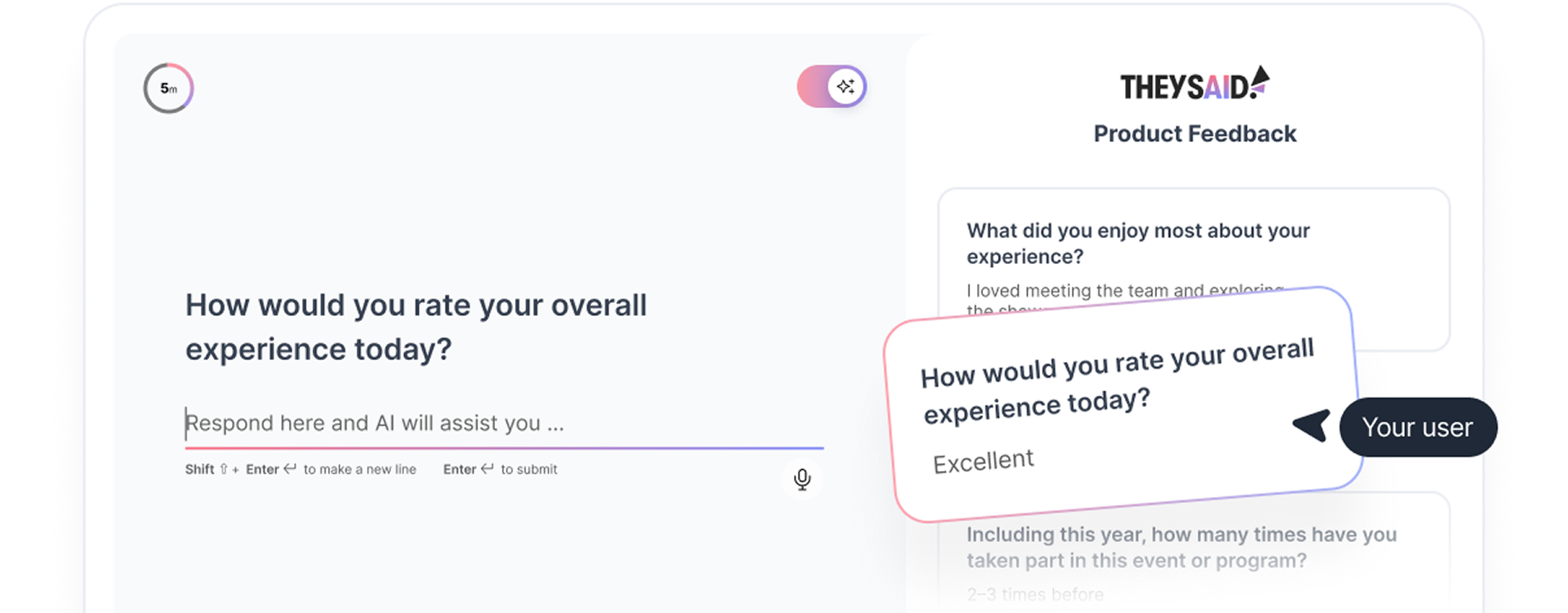 TheySaid gives design teams rich user feedback—faster and with less effort—so they can refine UX, validate ideas, and create experiences that truly resonate with customers.