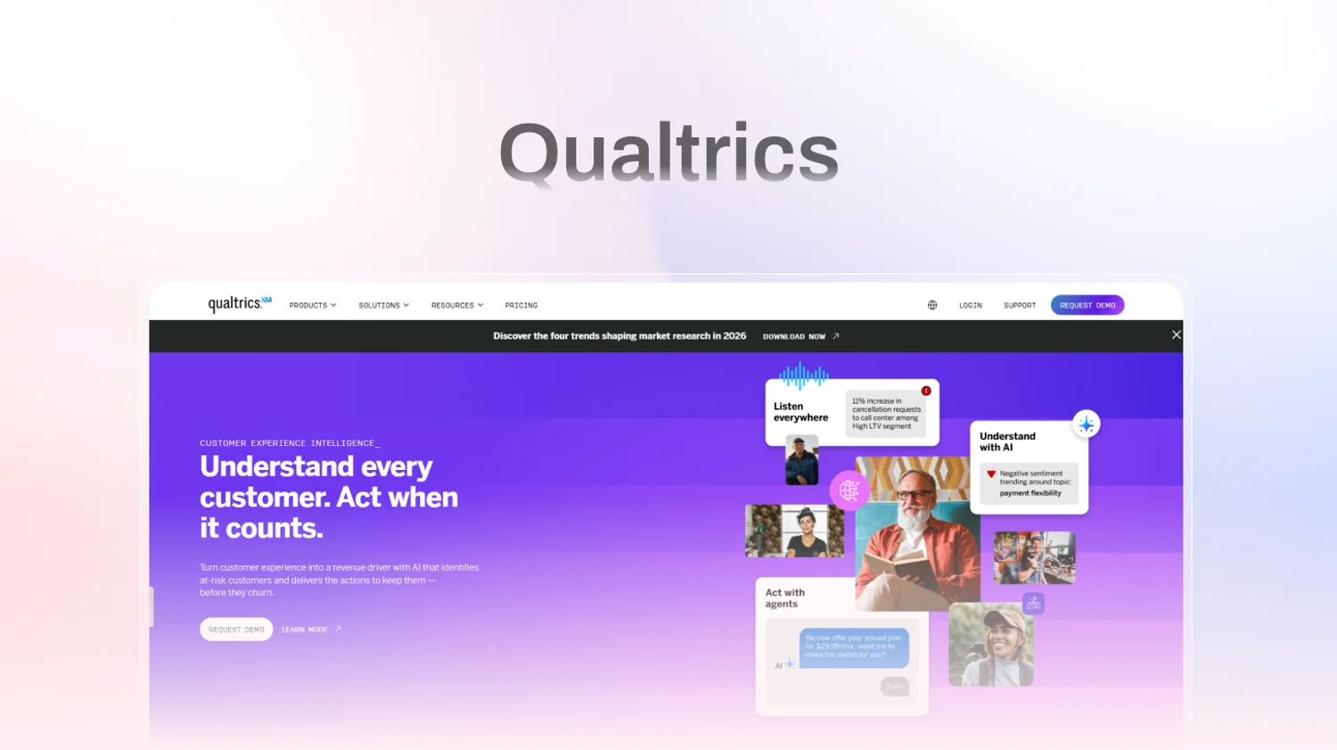 - Broad experience management coverage: Qualtrics extends beyond surveys into CX, EX, brand, and product experience, positioning itself as a full XM suite rather than a single-purpose tool.