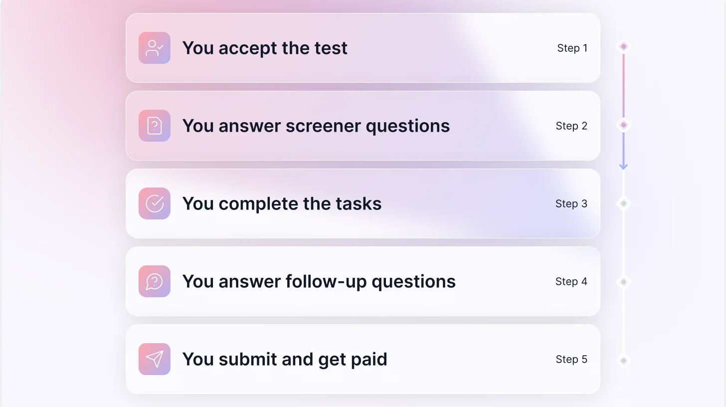 Most people picture user testing as something complicated. It’s not. Here’s exactly what a typical session looks like from the moment you accept a test to the moment you get paid.