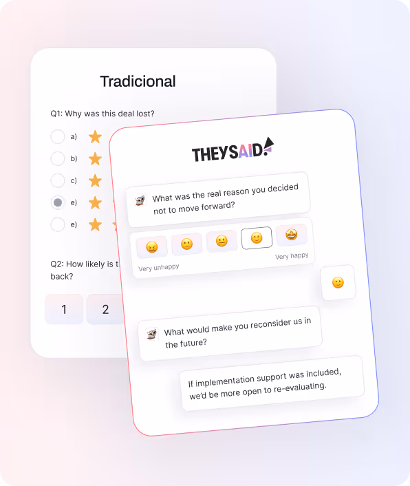 Instead of relying on secondhand sales rep interpretations or generic "pricing concerns" explanations, you get direct access to prospect thinking through AI-moderated conversations that feel safe and honest—uncovering the specific obstacles that can be addressed to win deals back.